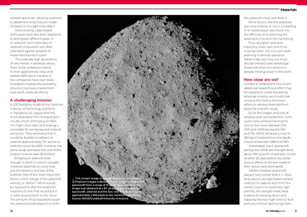 A 2012 feasibility study at the California Institute of Technology ( CalTech ) in Pasadena , US , argues that the most attainable first mining project would consist of bringing an NEA into high-lunar orbit , and making it accessible for surveying and material extraction . They estimated that it would be feasible to redirect an asteroid approximately 7m across to orbit the moon by 2025 . However , the same study estimates the cost of the mission to be at least $ 2.6 billion .