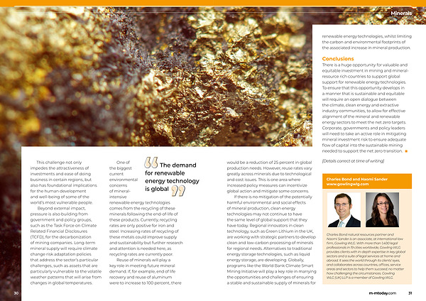 Beyond external impact , pressure is also building from government and policy groups , such as the Task Force on Climate Related Financial Disclosures ( TCFD ), for the decarbonization of mining companies . Long-term mineral supply will require climate change risk adaptation policies that address the sector ’ s particular challenges , such as assets that are particularly vulnerable to the volatile weather patterns that will arise from changes in global temperatures .