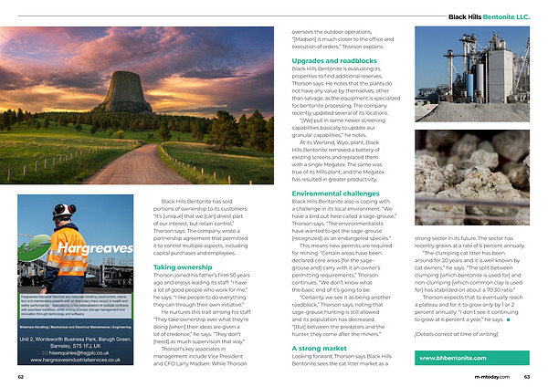 Black Hills Bentonite is evaluating its properties to find additional reserves , Thorson says . He notes that the plants do not have any value by themselves , other than salvage , as the equipment is specialized for bentonite processing . The company recently updated several of its locations .